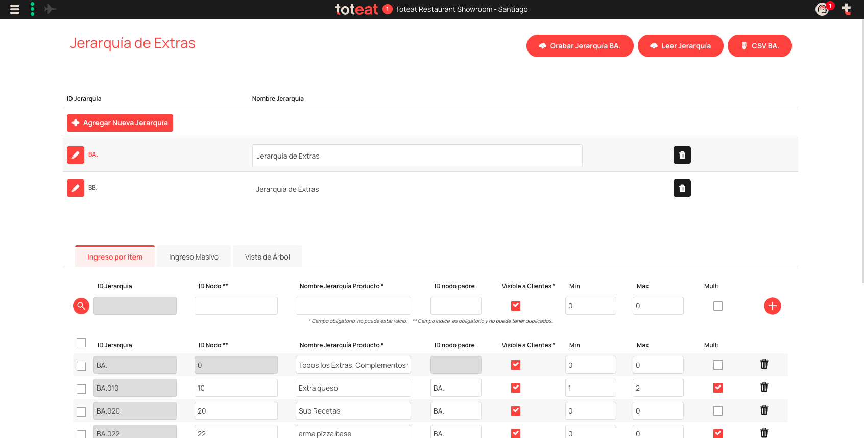 Importante: siempre debes realizar los cambios sobre la jerarquía BA, ya que el sistema de Toteat está optimizado para esta configuración.